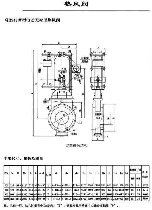 適用于介質溫度1000攝氏度以下的熱風爐系統。用作熱風閥、燃燒閥、煙道閥等。 QR42W型為鑄鋼或全焊本體,且閥體下部排污為圓管排污形式。具有冷卻水腔大,水質要求低的特點,且使用經濟。閥門靠介質壓差實現密封。 傳動方式:卷揚傳動、液壓傳動、電動傳動、電液推桿。 下角標“T”表示電動推桿。 主要材質:Q235B、20g。